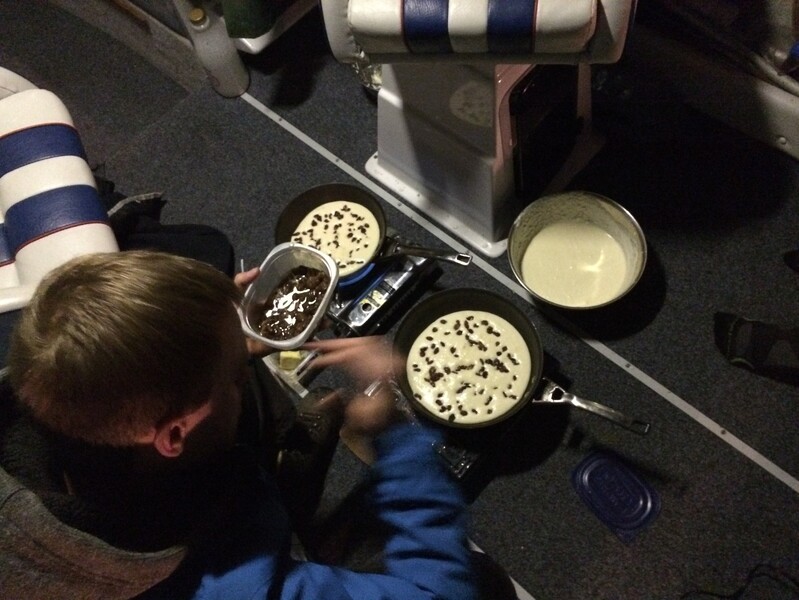 I was awoken in the middle of the night to the sound of Lucas saying he could hear fish working on the surface as he was flicking a spinner from his post out of the cabin hatch. Way too tired for fishing, I fell back asleep.