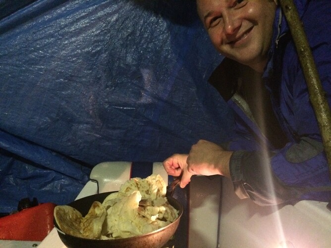 Chef Joe had dialled in some home made curry and naans for dinner, tapping into his childhood in the mountains of Pakistan and resident German Martin made some sort of tasty apple pancake things. The shanty was tied up with Splash Out to create a shanty village. After a late night swim from Chef Mazzer it was off to bed.