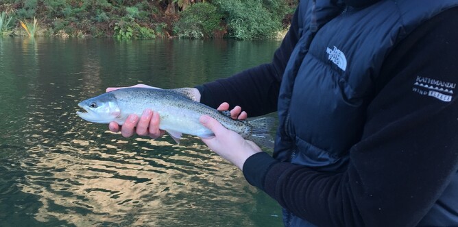 The steaming hillside a reminder of the geothermal activity in this area. Before long a small rainbow was at the boat, caught on the trusty sculpzilla.